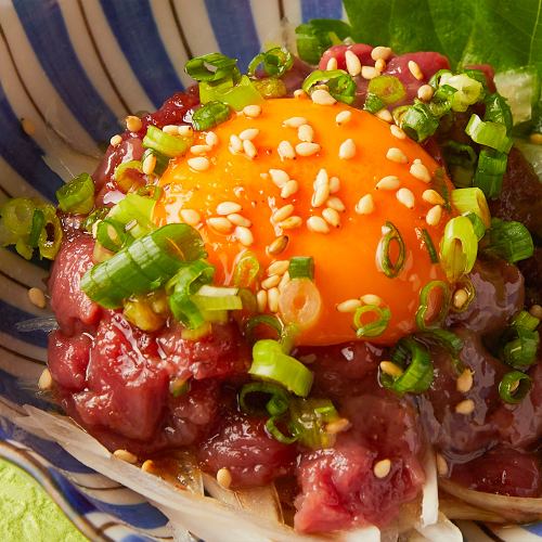 当店では熊本の名物である「馬肉」を使った様々なメニューをお楽しみいただけます。定番の「馬刺し」は新鮮かつ濃厚。部位ごとの多彩な味わいを楽しめます。さらに「馬刺しユッケ」は、お試しいただきたい逸品!噛むほどに、上品な旨味を楽しめる逸品です。個室席も多くご用意しておりますので会社宴会や忘年会、新年会や歓送迎会におすすめ♪
